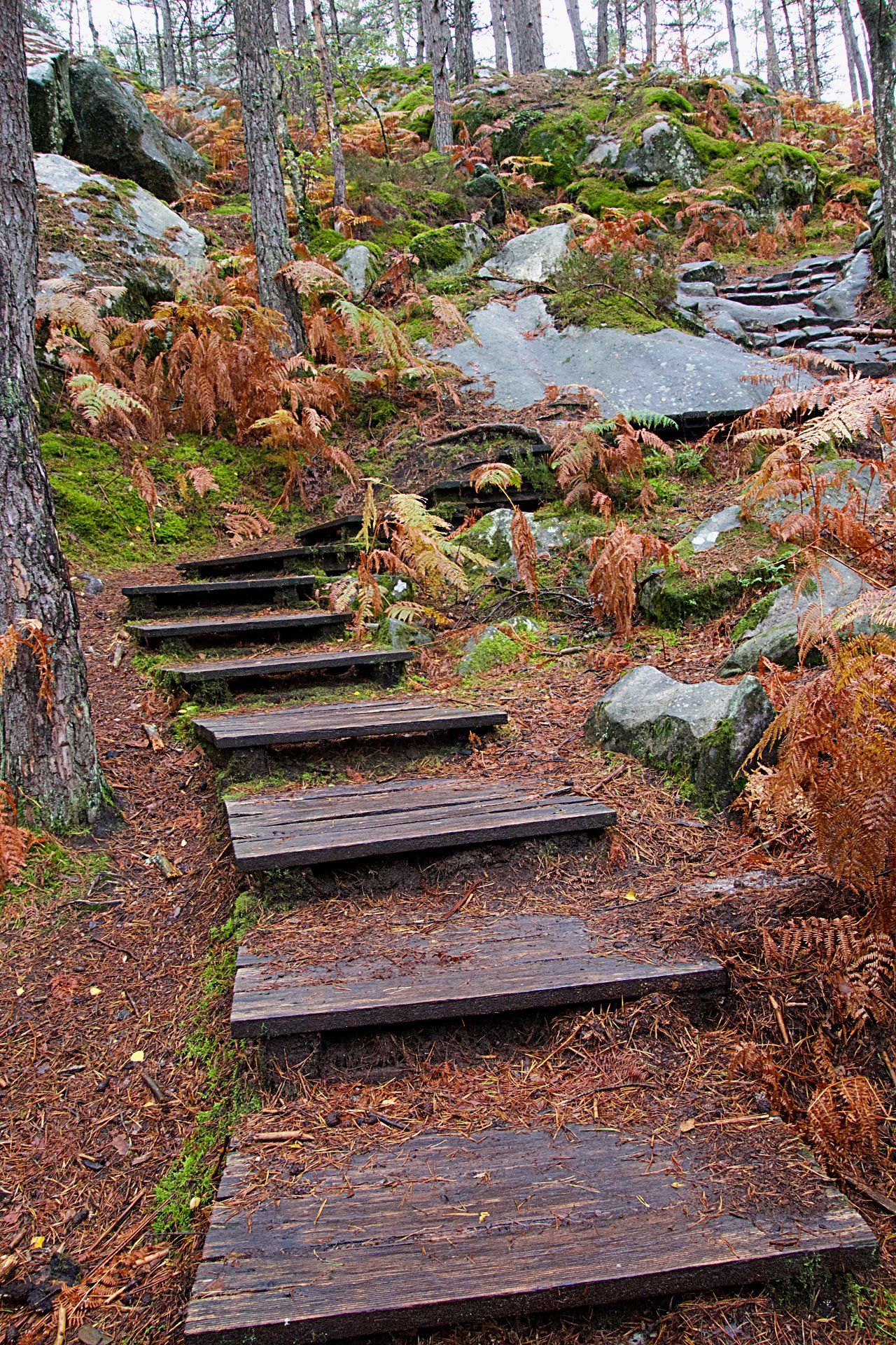 « Paysages typiques de la forêt : sol sableux, splendides blocs rocheux, allée de pins, cèdres de l'Atlas, sapins de Vancouver et marronniers d'Inde... En marchant sur de grands rochers plats, vous atteindrez, après l'ermitage de Franchard, un superbe point de vue. Le panorama s'étend sur l'ensemble des gorges et les horizons du pays de Bière, assombris par les bois de Coquibus »*