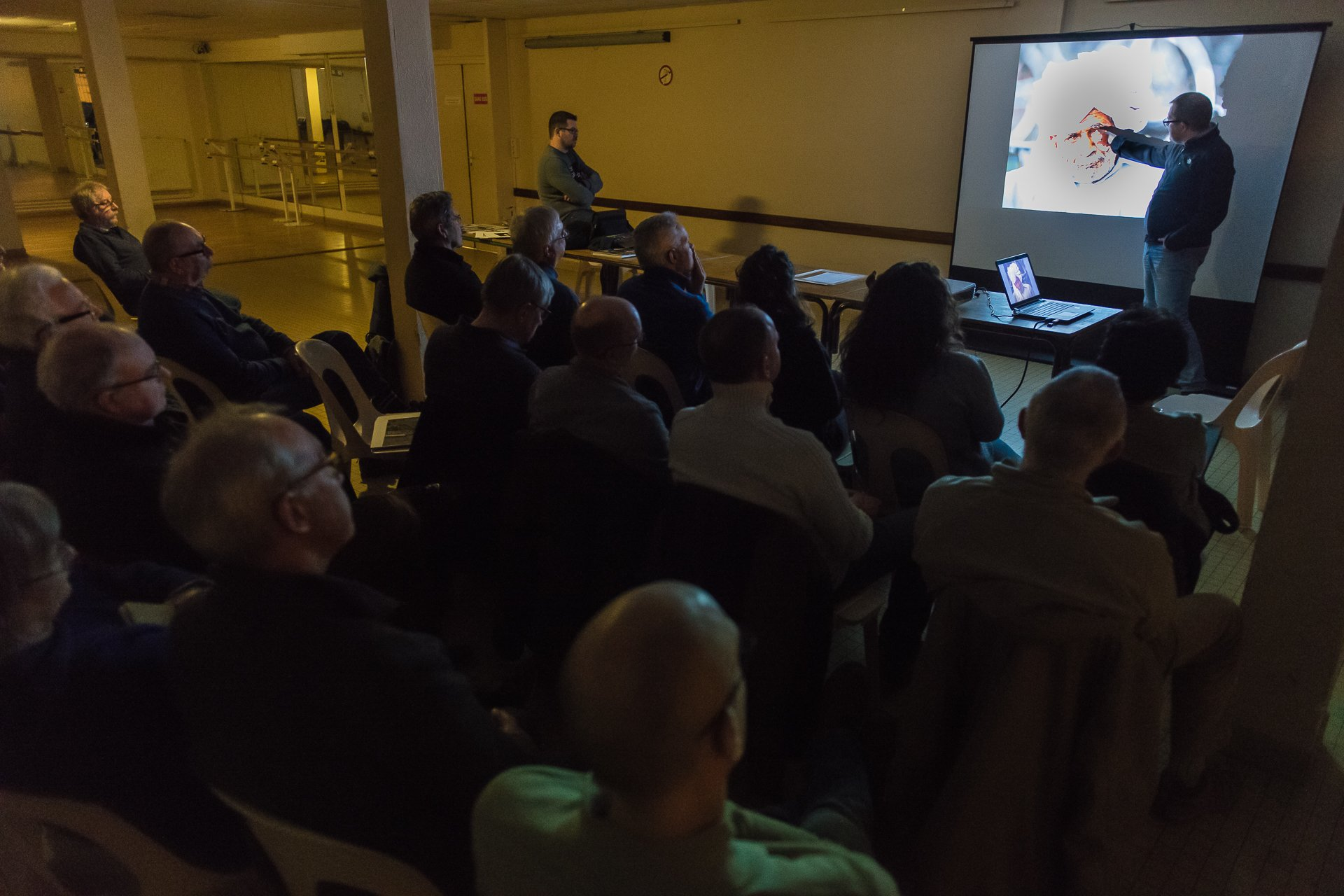 Lors de la projection de groupe, l'analyse d'image est commentée; les auteurs sont invités à s'exprimer sur leur création avec les analystes et les adhérents du club.